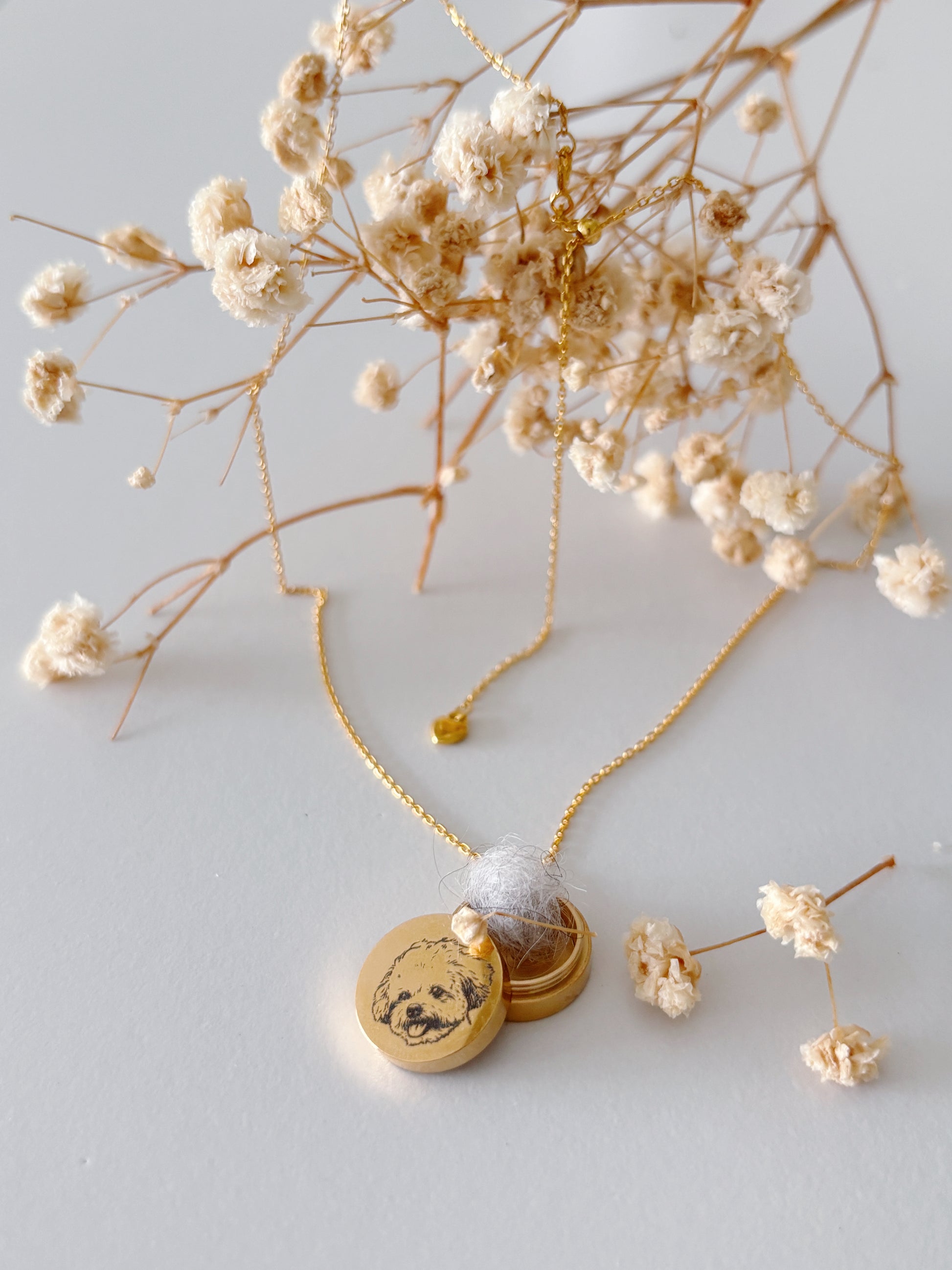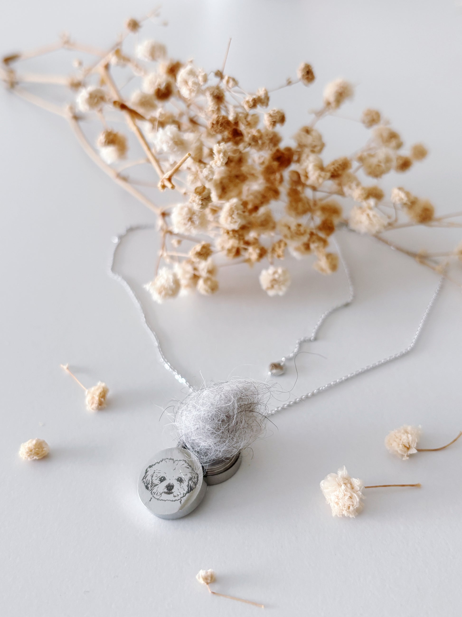 Reminisce is a keepsake pendant designed for the memories you never want to let go of—a soft curl of fur, a tiny tooth, a piece of love too precious to lose. With a discreet screw-on mechanism, it opens to hold your chosen memento, safely sealed within.